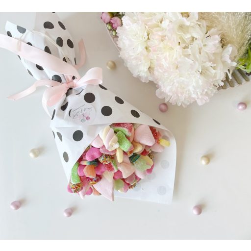 A csokor 60-70 db cukorpálcát tartalmaz, változatos finomságokkal.